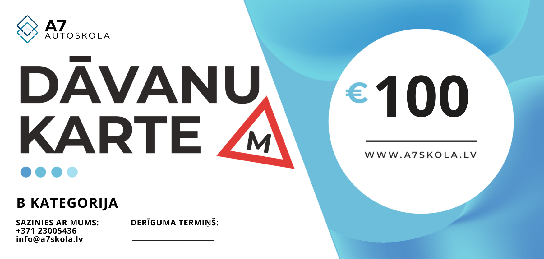 Dāvanu karte autoskolā A7 – dāvini brīvību un jaunas iespējas!